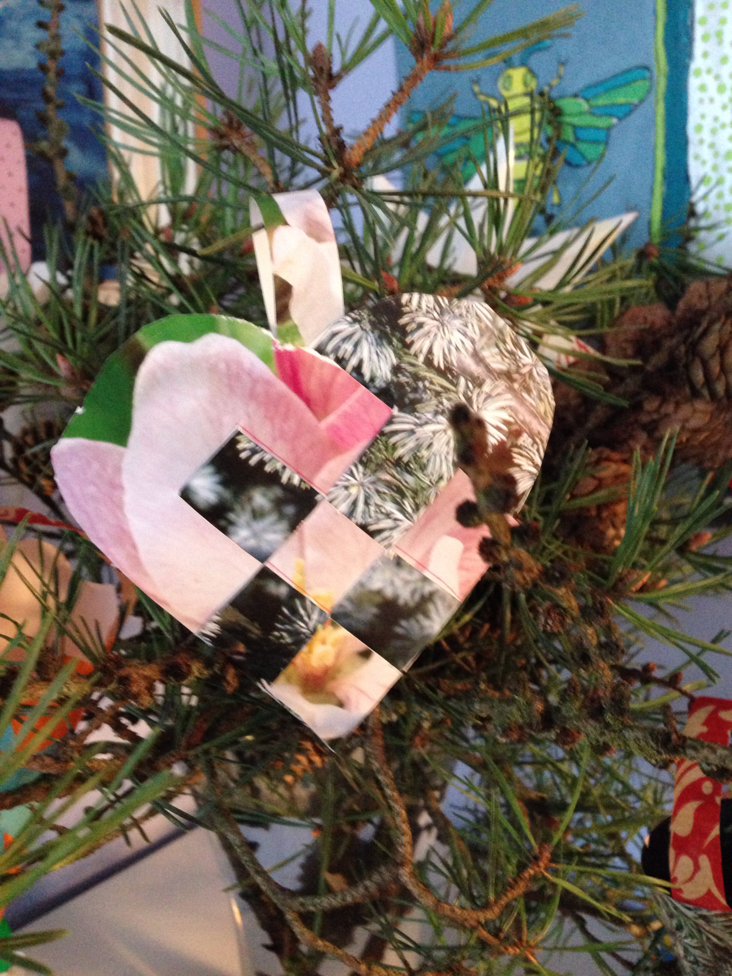Stjernerne var for svære at sætte sammen for mine piger, men de lavede i stedet julehjerter og kræmmerhuse af bogens sider.