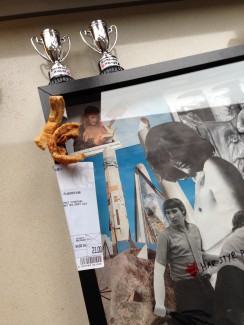 Da min kollega fik overdraget collagen skulle der også lige en ekstra ting på rammen. En fælles historie med uspiselige flæskesvære fra Irma, som de stadig taler om, var årsag til, at der (mod min anbefaling) kom flæskesvær og prismærke på rammen. Det blev nu faktisk meget sjovt.
