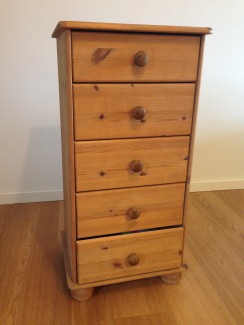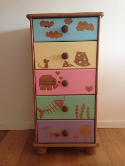 Du er måske stødt på et træmøbel i stil med den lille kommode/skuffedarie her. Jeg ved ikke med dig, men jeg synes, at stilen er meget lidt fiks – og kedelig! Skufferne er nu hyggelige på et pigeværelse til tegninger, dimser m.m., så den har fået en nuttet makeover og er forvandlet til et unika, der er værd at beholde 🙂