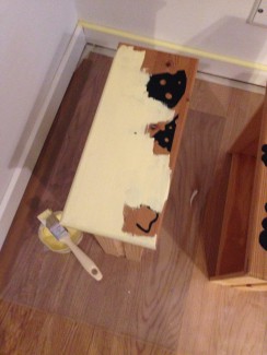 Inden malingen var tør løftede jeg forsigtigt hyldepapiret med en knappenål, så jeg kunne få fat og trække klæbet af.
