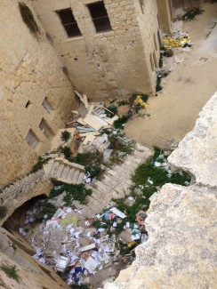 Som afslutning på indlægget får du ‘bagsiden af medaljen’ i, hvad der efter min mening er, en af de smukkeste byer i verden, og et eksempel på, hvad der sker, når man bare lader stå til med det henkastede affald – Back stage Valletta.