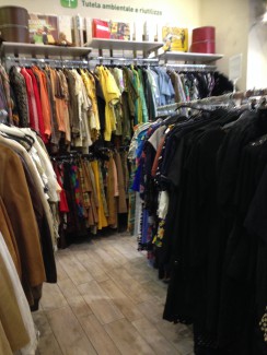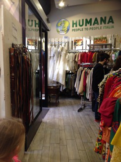 I Milano, tæt ved katedralen og arkaden med de mange dyre mærkevarebutikker, fandt jeg nødhjælpsorganisationen Humanas Vintage butik. Priserne var pebrede, men hvad kan man ellers vente sig af en second hand butik i modens by? Og der var da også flere spændende mærkevarer på hylderne.