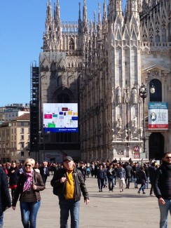 Apropos æstetik har Milano den smukkeste katedral, der pt. er under restaurering – men hvem fanden finder på at sætte en storskærm med reklamefilm på dens ene side? Bare endnu et eksempel på, at vi lever i en tidsalder blottet for stil og fuld af forvirrende og smagløse elementer. Og hvor jeg dog drømmer og håber på en fremtid med byer med mere grønt og færre reklamer!