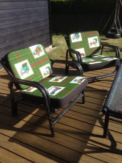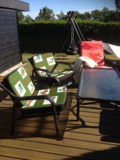 Der har været dødt på bloggen i den seneste tid, fordi jeg har haft travlt med en istandsættelse af et gammelt sæt havemøbler. Det har været lidt af et evighedsprojekt, men de er nu langt om længe færdige, og har fået en meget personlig stil, som er min!