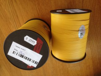 To ruller karrygult gavebånd, som nogen aldrig har fået brugt.