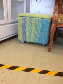 Det er uden tvivl ikke luksus genbrug, og der var da også et par ting, der nok er tvivlsomme at få solgt. Blandt andet denne her strikskammel.