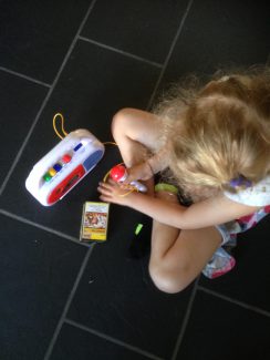 Tøj og ting til tøserne – et mangelaget penalhus og en fodbold, som min ældste har ønsket sig i nogen tid. En ny båndoptager, for den gamle er gået stykker, og kassettebånd (jep, vi går all in på retrolegetøj hos os!).