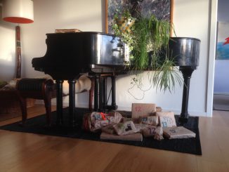 Det sker sjældent, at mine børn får legetøj ved andre lejligheder end jul og fødselsdage, men i december går det helt amok, når genbrugsnissen forkæler! Og selvom de er store nu (7 og 10 år) nænner jeg ikke at afsløre, at han ikke findes. I år har jeg dog droslet ned for de daglige løjer ved at levere de 24 pakker på én gang. Pigerne fandt de nummererede pakker under klaveret.