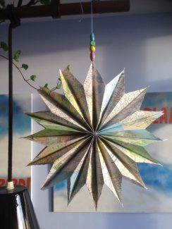 Man folder ca. 8 aflange papirrør og samler hvert rør med limstift. Herefter foldes hvert rør midt over, hjørnerne i hver ende, der bliver til stjernens spidser, klippes af, og de foldede ender limes sammen med limpistol.