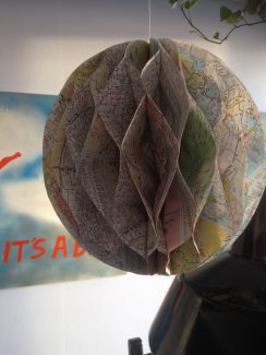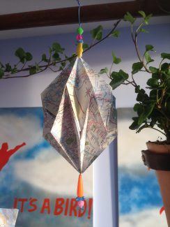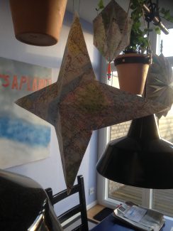 Atlassets sider var ikke så julede, men passede til gengæld perfekt som pynt på mit nye lampeophæng nytårsaften.