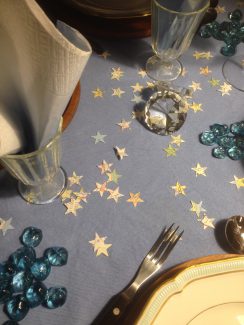 …Sammen med bordpynten, der var udstansede stjerner af samme roadmap.