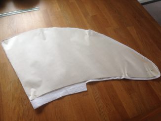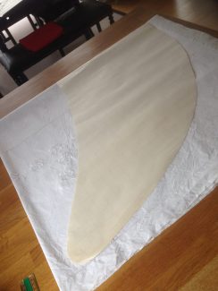 Her kan du se, hvordan betrækket er syet. Jeg har klippet ved at folde dugen i 4 lag.