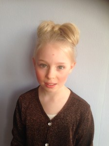 Frisuren er fundet på Pinterest og skal forestille en sløjfe. Gallafrisurer til børn kan godt blive lidt for damede, men denne her har en mere nuttet og tøset stil og er ok nem at sætte.