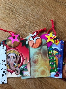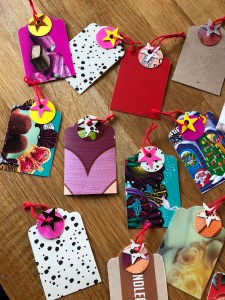 Er du ude efter bæredygtige til-og-fra kort og andre smågaver, så se her. Ideerne er mine og de er udført i papemballage, tapetrester og andet skrald, der skulle være smidt ud.