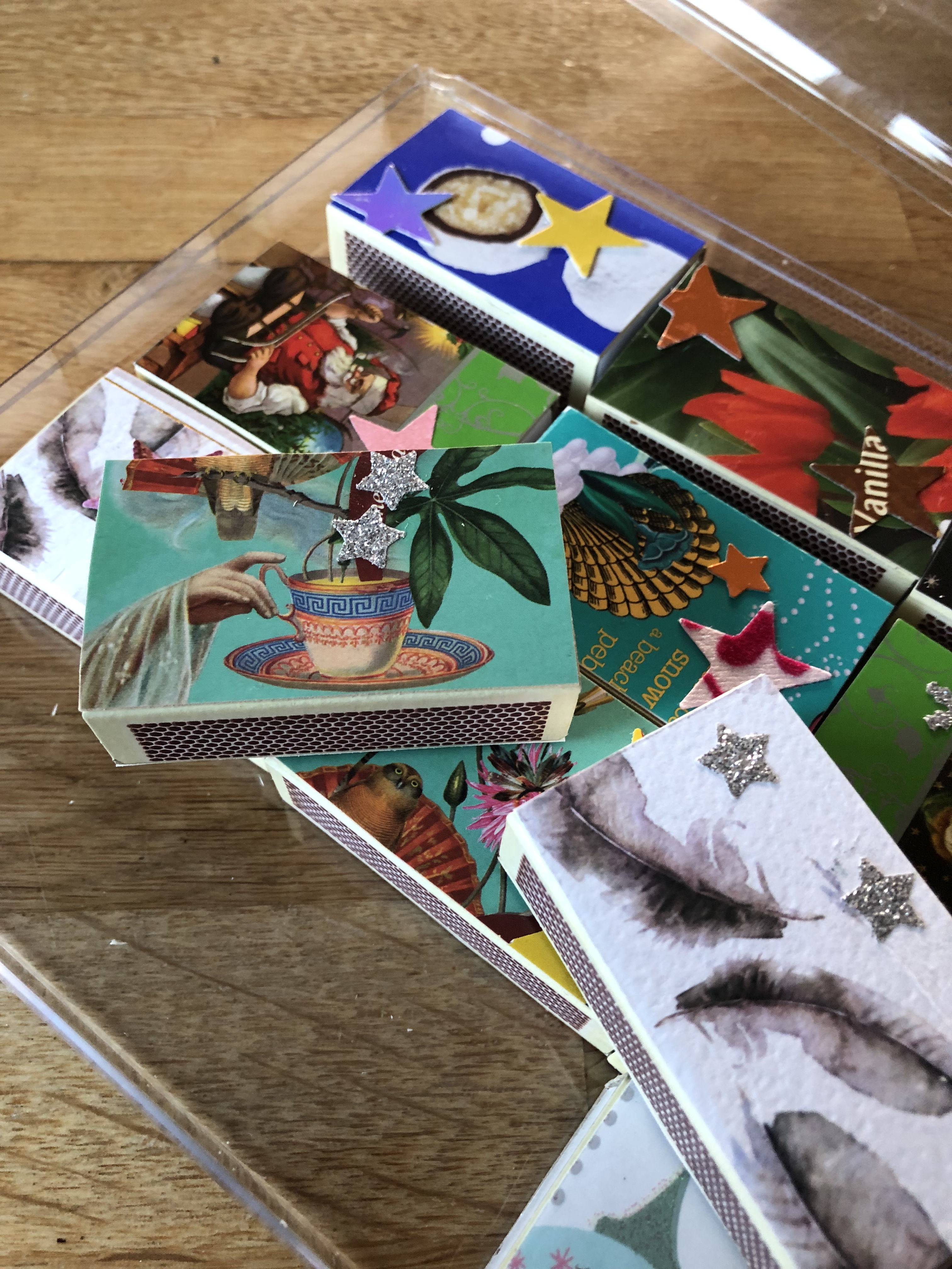Dekorerede tændstikæsker 10 kr. stk.