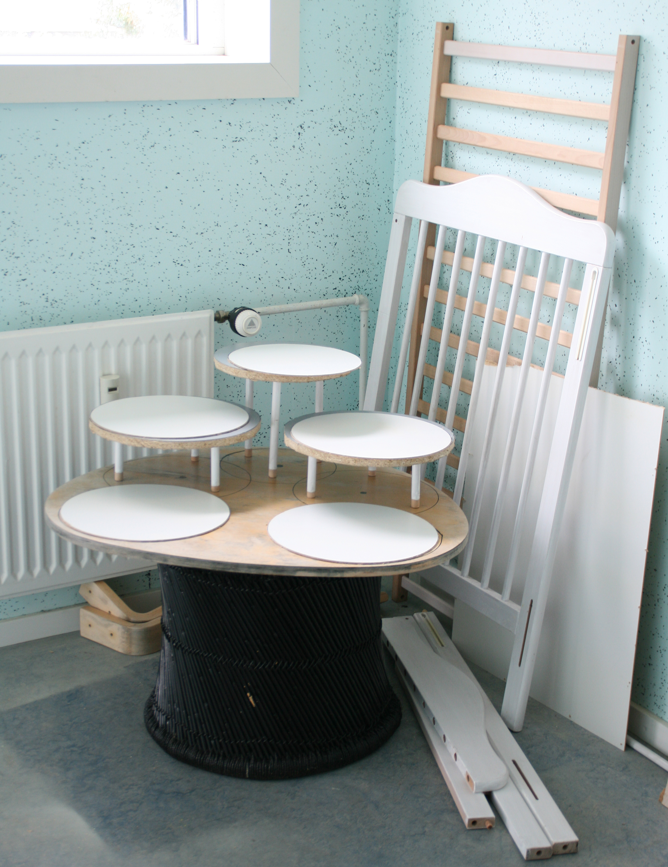 Ofte er det svært at abstrahere fra en tings nuværende form og funktion og bruge den i en ny sammenhæng. Et eksempel er at forkorte benene på et bord og derved forvandle det til en puf, en hylde eller en bænk. Eller som nedenstående eksempel, hvor jeg har lavet en kageopsats ud af et lille IKEA-bord og en tremmeseng, som var sat ud i byttehjørnet, hvor jeg tidligere boede.